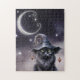 Puzzle Chat d'Halloween noir portant un Casquette de sorc
