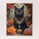 Puzzle Chat noir avec de belles bijoux et fleurs