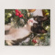 Puzzle Chat noir et blanc en jeu dans l'arbre de Noël