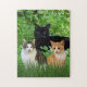 Ce puzzle amusant sera apprécié par tous ceux qui aiment les chats. Le puzzle de jigsaw présente un de mes dessins de collage. Une de mes photos originales d'un chat noir allongé dans le trèfle est dans l'arrière - plan, puis j'ai ajouté deux coutouts d'un chat gingembre et un chat tabby noir et blanc. Ce puzzle serait un anniversaire réfléchi ou un autre cadeau d'occasion pour cette personne spéciale.