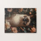 Puzzle Chat Siamois Entouré De Fleurs Roses Bruyantes