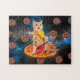 Puzzle Chat sur une pizza mangeant de la glace lolly