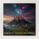 "Entrez dans un monde d'émerveillement avec cette oeuvre d'art à couper le souffle, avec un château majestueux perché sur une colline, brillant chaleureusement sous un ciel étoilé vibrant. Entourée de vallées brumeuses, de prés vallonnés et d'un horizon de crépuscule onirique, cette scène enchanteresse saisit la magie des contes de fées et des royaumes d'imaginaires. Parfait pour les amateurs de châteaux, de paysages d'imaginaires et d'art capricieux, ce design évoque des sensations de mystère et d'aventure. Idéal pour ajouter une touche magique à votre décor ou comme cadeau pour les rêveurs comme pour les conteurs." Vous pouvez aussi personnaliser avec un message d'amour.
