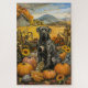 Célébrez la beauté de l'automne avec cette peinture vibrante d'un chien assis à côté d'une récolte abondante de Thanksgiving. Les riches couleurs automnales des citrouilles, des tournesols et du paysage rustique de la ferme créent une atmosphère chaleureuse et accueillante, parfaite pour la décoration saisonnière de tout amateur de chiens.
