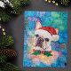 French Bulldog Breed Dog Christmas possède une aquarelle d'un Bulldog français avec un Casquette Père Noël rouge, un collier de Noël rouge et une aquarelle galaxie.