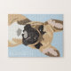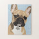 Puzzle pop art français bulldog mettant en vedette une jolie frenchie rouge sur un arrière - plan bleu pastel qui peut être changée en n'importe quelle couleur, et votre nom.