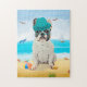 Un chien français Bulldog assis sur la plage est une idée cadeau parfaite pour quelqu'un qui aime cette race de chien.