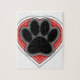 Un empreinte de patte de chien de style dessin animé dans un coeur rouge avec des contours en noir. Design original pour les amateurs de chiens.