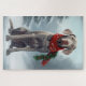 Au beau milieu d'un pays merveilleux d'hiver, un chien ludique profite d'un matin de Noël enneigé, laissant d'adorables empreintes de pattes dans la neige scintillante. Leur joie et leur curiosité ajoutent de la chaleur à l'enchanteresse des lieux de vacances, ce qui en fait une véritable magie.