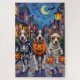 L'adorable Chesapeake Bay Terriers habillés de costumes d'Halloween ludiques portent des seaux citrouilles tout en trompant ou en traitant sous le ciel illuminé par la lune. Ce design festif met en valeur la robustesse de la race, l’esprit loyal et la nature joyeuse, capturant parfaitement l’atmosphère éffrayante et amusante de la nuit d’Halloween. Une délicieuse célébration pour les amoureux de les chiens comme pour les amateurs d'Halloween.
