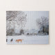 Puzzle chiens jouant dans la scène de neige paysage d'hiv