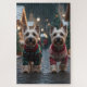Cette conception festive capture l'esprit joyeux de la saison des fêtes, mettant en vedette des chiens adorables. Nichés dans un pays des merveilles hivernal, avec un arbre de Noël décoré et des cadeaux magnifiquement emballés. Les flocons de neige tombent doucement, ajoutant une touche magique à la scène, tandis que les couleurs vives des décorations de Noël créent une atmosphère chaleureuse et joyeuse.