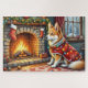 Puzzle Chinook Sitting by Fireplace with Christmas Lights