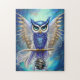 Blue Steampunk Owl, ce design présente une chouette bleue steampunk aux yeux bleus.