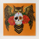 Puzzle Chouette aux crânes de sucre vifs avec roses rouge