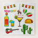 Divers plats et boissons mexicains pour célébrer Cinco de Mayo, pour personnaliser en changeant de nom sur n'importe quelle couleur arrière - plan