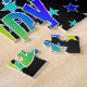 Ce puzzle animé, amusant et sur le thème de l'anniversaire a le message "HAPPY BANTHDAY, CINDY" avec les personnages ayant un spectre arc-en-ciel coloré inspiré motif dégradé, ainsi qu'un champ excitant d'étoiles arrière - plan motif. Un puzzle vibrant comme celui-ci pourrait être utilisé pour envoyer des voeux d'anniversaire à quelqu'un du nom de Cindy. [~Z0000468]