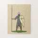 Coiffé d'un hauberk et d'un casque nasal de longueur genou, portant une lance à pointe d'acier et un bouclier en forme de cerf-volant, un chevalier norman débarqué vers 1066 semble prêt à conquérir l'Angleterre médiévale dans cette illustration originale de Richard H. Fay.