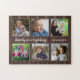 Puzzle photo à personnaliser avec 6 photos. Personnalisez le puzzle photo collage arrière - plan de texture bois avec votre nom de famille.