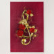 Clé de sol dorée, décorée de roses rouges et de feuilles dorées sur fond texturé.