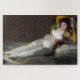 Ce dessin présente un tableau de l'artiste espagnol Francisco Goya (1746-1828). Elle montre une élégante dame du nom de Maja allongée sur une chaise longue. Il s'agit d'une version habillée d'une peinture antérieure qui montrait la même femme déshabillée. Elle est une beauté élégante et clairement confiante dans son propre corps. Elle porte une robe blanche luxueuse et des pantoufles dorées. Elle a aussi un tissu rose enroulé autour de sa taille, accentuant sa forme et ses courbes féminines. L'art original a été peint entre 1800 et 1805.