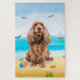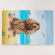 Le chien mignon assis sur la plage est une idée cadeau parfaite pour quelqu'un qui aime cette race de chien.