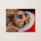 Ce cocker américain est tout prêt pour Noël ! C'est une peinture numérique faite à partir d'une photographie d'un épagneul mignon utilisant un casquette rouge lumineux de Père Noël.