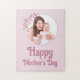 Custom Pink Floral Photo Collage Fête des Mères puzzle : Souhaitez à la nouvelle maman dans votre vie une joyeuse journée de la mère avec 1 photo carré et un message personnalisé. Toute la scie est rose et blanche !
