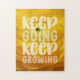 Profitez d'heures de plaisir avec ce joli puzzle avec une photo de closeup d'une fleur de betercup jaune et la citation positive "continuez à croître."