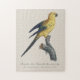 Cette image est une illustration d'histoire naturelle finement détaillée d'un jeune perroquet soleil, historiquement appelé en français « Guarouba dans son jeune âge ». L'œuvre d'art capture l'oiseau perché avec grâce sur une branche texturée, montrant à la fois une précision anatomique et un raffinement esthétique typiques de l'illustration scientifique ancienne.