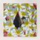 Image d'un coq avec des fleurs de frangipanier avec des poulets qui les traversent