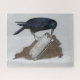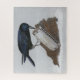 Un dessin au crayon de couleur d'une curieuse corneille enquêtant sur un harmonica brillant qu'il a trouvé orne ce puzzle amusant!
