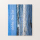 Un puzzle de souvenir avec une photographie prise à la roche de joint sur la côte de l'Orégon du bel océan pacifique bleu, des vagues se brisant sur le sable et des roches ébréchées. Personnalisez en ajoutant votre nom au texte personnalisable qui indique : Scellez la roche, côte de l'Orégon. Perfectionnez pour des amants de plage.