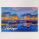 Ce puzzles de scie pittoresque présente une photo de la ville emblématique de Copenhague, au Danemark, en début de soirée. Ce puzzle de voyage ferait une idée cadeau vraiment merveilleuse pour les meilleurs amis et la famille.