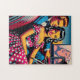 Un couple de style années 1950 à une date romantique dans leur voiture convertible dans un cinéma en voiture. Jolie bande dessinée style bande dessinée pop art ai.