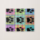 Un quilt coloré à motif de chien. Bandes et carrés de nombreuses couleurs. Image entièrement numérique. Puzzles personnalisés. Idée cadeau.