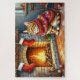 Puzzle Cozy Abyssinian Cat by Fireplace Christmas Lights