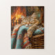 Puzzle Cozy Cat Sleeping in Basket by Warm Fireplace