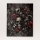 Un arrière - plan sombre et pointu avec des crânes, des roses gothiques, et des symboles de poker complexes, comme du tatouage