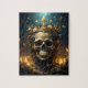 Cette oeuvre d'art présente un crâne orné, orné d'une couronne royale, intimement mêlé de vignes luxuriantes et de fleurs éclatantes. Des bougies à flickering ajoutent une lueur mystique, jetant des ombres dynamiques qui donnent vie à la scène. Tout cela dans un cadre forestier serein, créant un équilibre saisissant entre beauté et mystère.