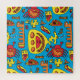 sauvage et farfelue sous les caricatures de mer. craps funky, poisson inconnu et bien sûr une subamarine jaune.