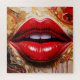 Indulge in the high-fashion energy of "Crimson Gloss." This premium jigsaw puzzle features a stunning close-up of vibrant, high-shine red lips set against a swirling, marbled backdrop of liquid gold, cream, and deep amber. The contrast between the sharp, symmetrical perfection of the smile and the fluid, organic movement of the abstract background provides a sophisticated and engaging building experience.