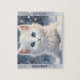 Puzzle à thème hivernal avec un adorable chaton blanc moelleux dans un paysage enneigé. Fait un mignon pochette. Livré avec un coque en carton avec une image de puzzle imprimée sur le couvercle! Personnalisez facilement le texte ou laissez-le vide. - Kate Eden Art
