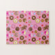 Puzzle à tirage graphique coloré représentant des beignets, des cupcakes et des hommes en pain d'épice. Sur un bel arrière - plan rose. Belle idée cadeau pour tous ceux qui aiment la cuisson, ou tout simplement les gâteaux.