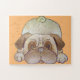 Le mignon petit carlin marron sur ce puzzle pour enfants est un dessin de crayon couleur original. Le petit carlin est de jouer à l'arc et d'être un chiot ludique. L'illustration amusante du carlin est un design original. Le personnage de chien mignon est établi contre un arrière - plan de pêche doux et est un grand morceau de chien de scie à thème qui est idéal pour garder les enfants divertis.