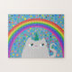 Mignonne, doodle, chat - illustration de licorne en combinaison avec de beaux arc-en-ciel et de fabuleuses étoiles colorées dans l'arrière - plan. Unique, adorable, puzzle fantaisiste, choix parfait pour les enfants.
