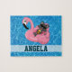 Puzzle Cute Chat sur Flamant rose rose Floatie Blue Nom F