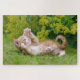 Puzzle Cute chaton jouant dans un jardin fleuri _
