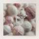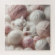 Doux petit chaton blanc dormant dans des boules de fil rose et blanc.