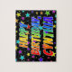 Cette conception amusante et vibrante de puzzle sur le thème de l'anniversaire comprend le message "HAPPY BANTHDAY, CYNTHIA" avec les personnages ayant un spectre arc-en-ciel coloré inspiré motif dégradé, ainsi qu'un champ animé d'étoiles arrière - plan motif. Un puzzle aussi excitant pourrait être une façon amusante d'envoyer un message d'anniversaire à quelqu'un nommé Cynthia. [~Z0000468]